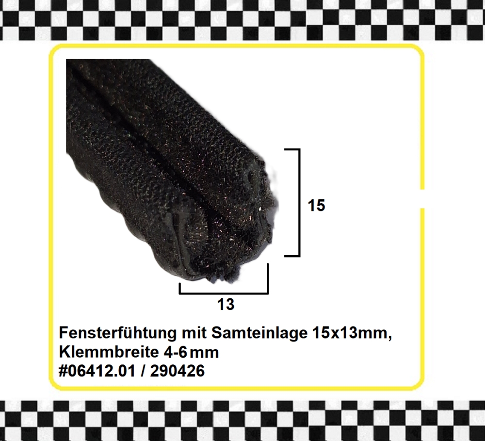 Fensterführung mit Samteinlage 15x13mm, Klemmbereich 4-6mm